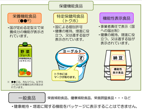 国が定めた安全性や有効性に関する基準などに従って食品の機能が表示されている食品です。